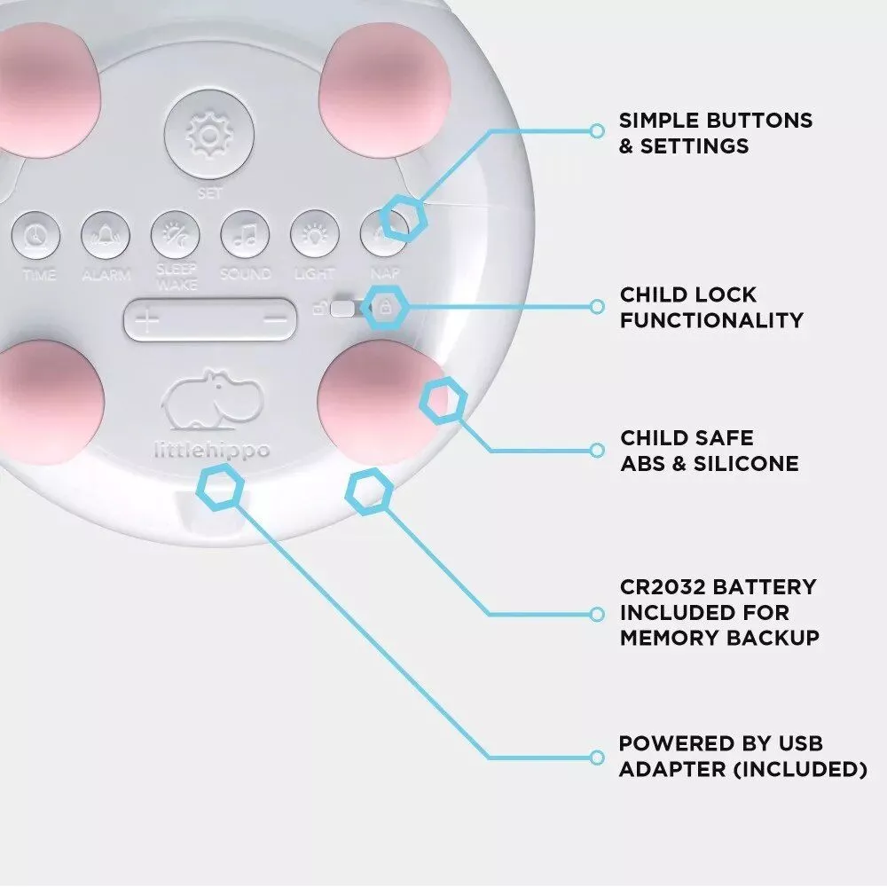 • Adorable sleep trainer with expressive facial cues